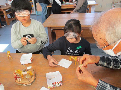 2025.12.05(金)本年度最後の高平小3年生環境体験学習で来年度干支(午)飾りのクラフトを楽しんで頂く
