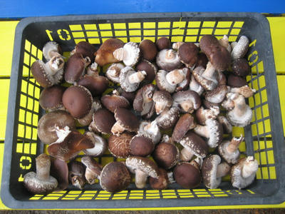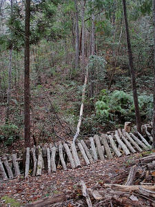 伐倒し椎茸ホダギ用に定寸切りし積み上げたホダギ