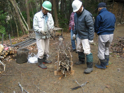 2025.12.20(土)椎茸栽培用にコナラの伐倒・保管及び炭焼き財の柴作り作業