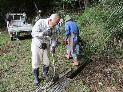 散策路側溝の清掃