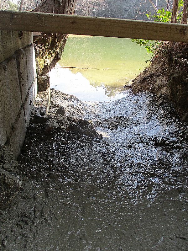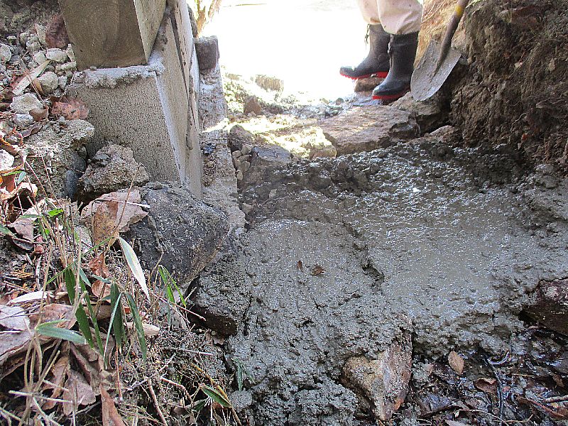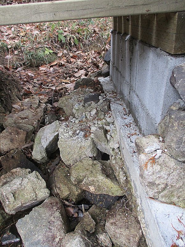 大きな石を入れ取り急ぎ補強、後日セメントで固める予定