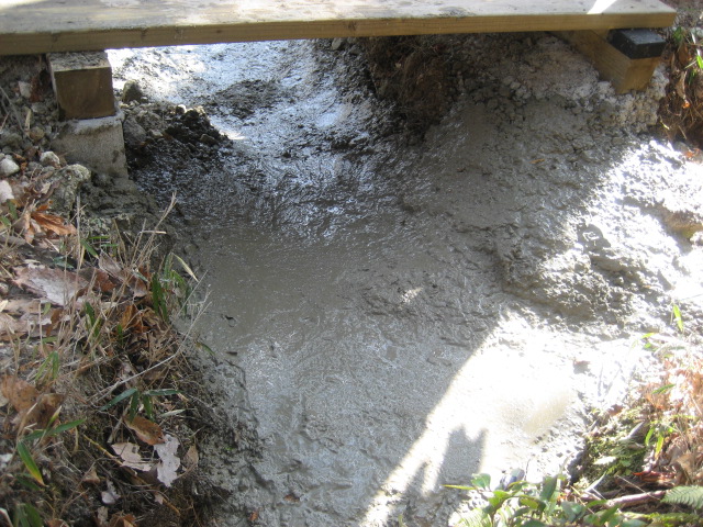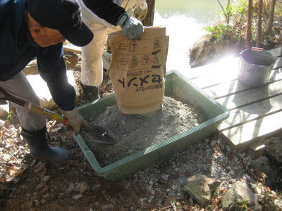 前回木橋の土台部分にセメントを流し込み土砂にえぐられないよう