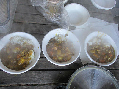 昼食はグルメ担当さんに調理して頂いたカレーを頂く