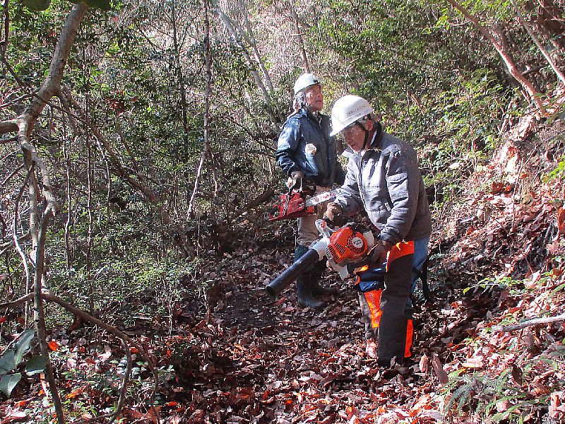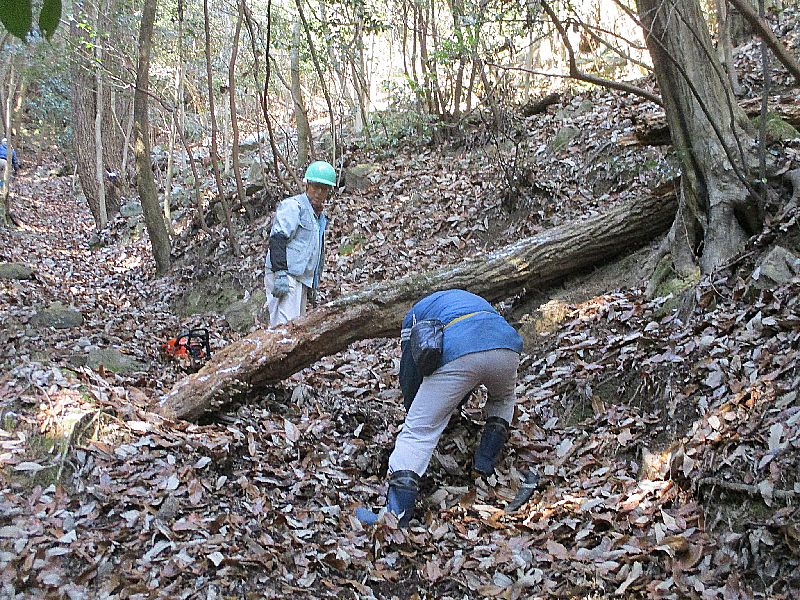 2026.02.01(日)昭和池~金比羅道~烏岳への散策路に倒れている倒木の除去及びブロワーで落ち葉の除去と炭焼き用柴作り作業
