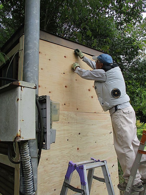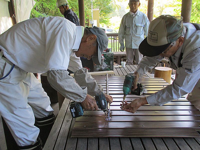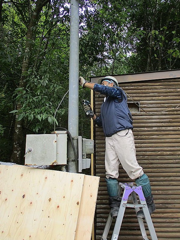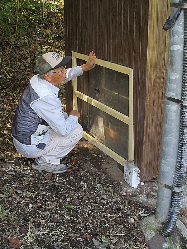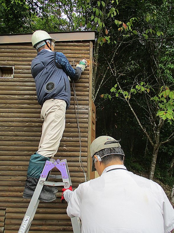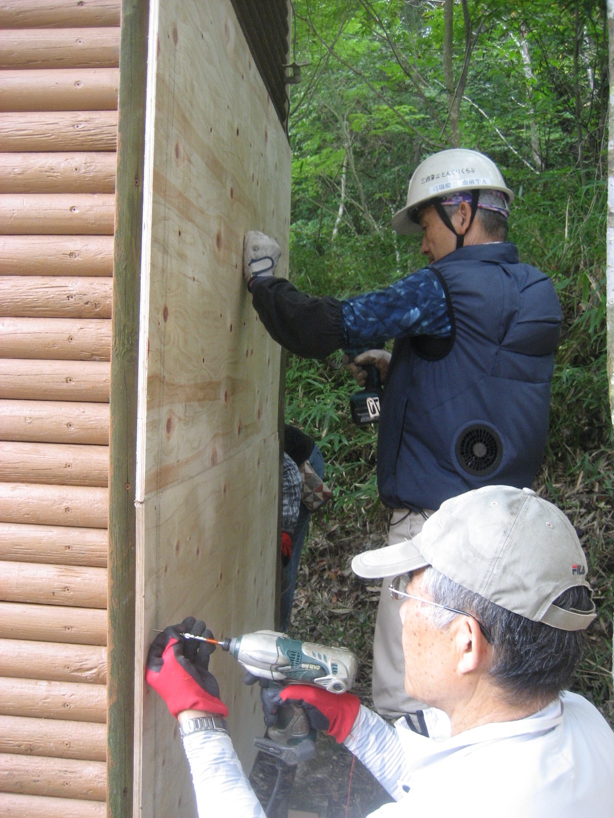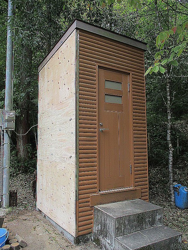 バイオトイレ裏側の点検口カバー取り付け作業完成後