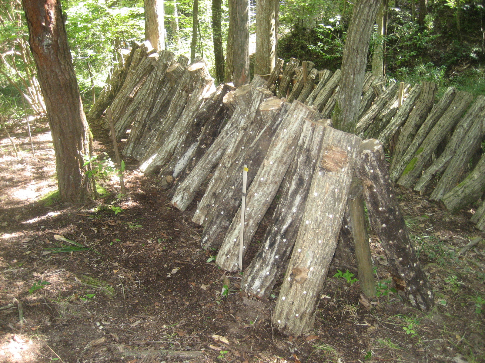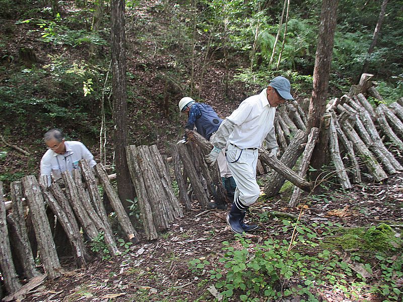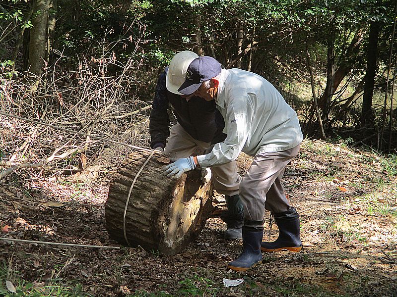 椎茸ホダギ本伏せ作業・古いホダギの除去作業