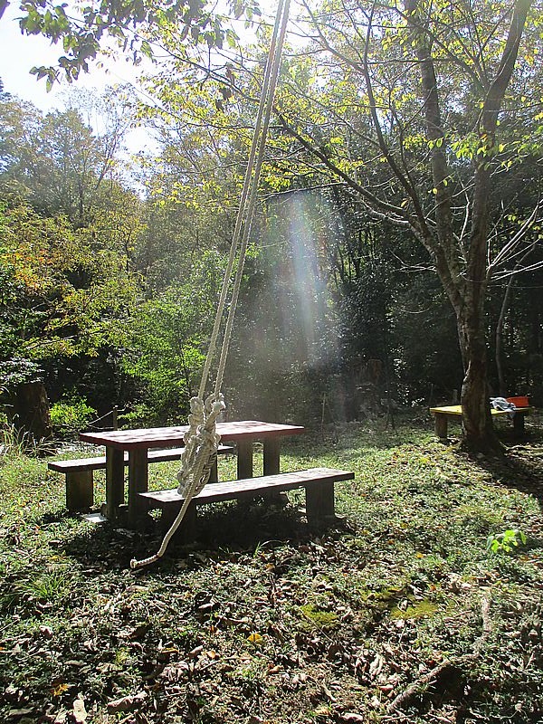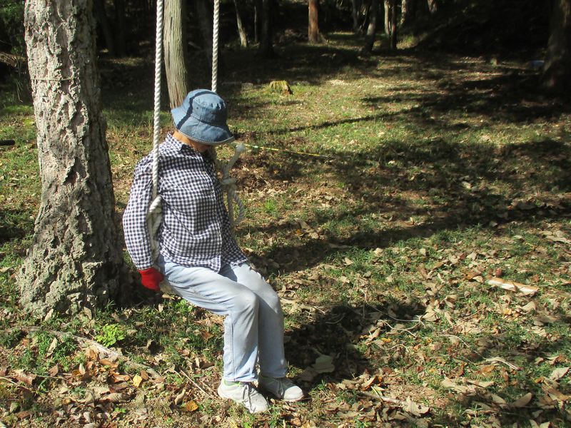 高平小3年体験学習下草刈、雑木の伐倒準備、ロープブランコ