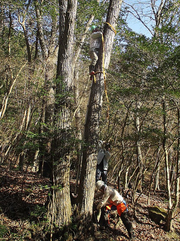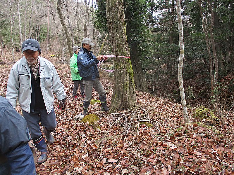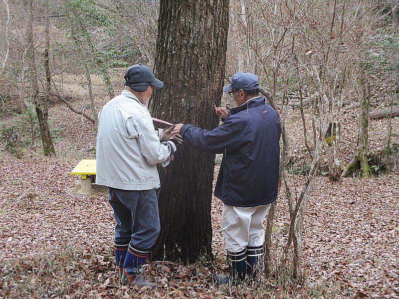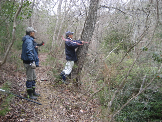 三田市よりナナマツ散策路の枯れ木を調査しマーキングするよう依頼ありマーキング作業