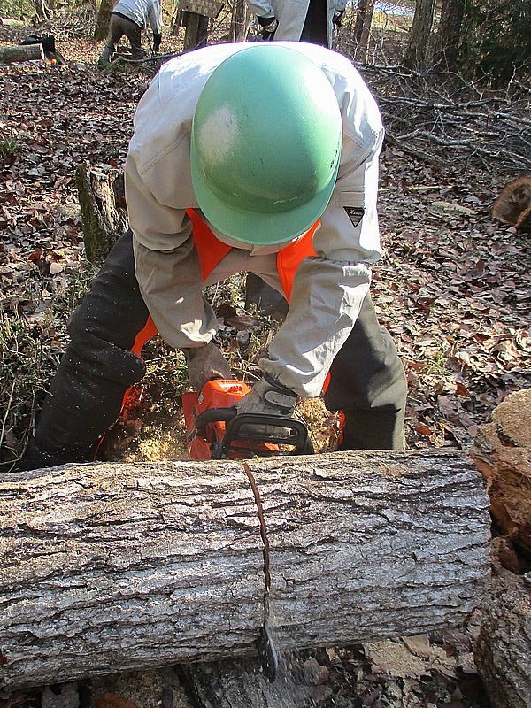 2024.01.07(日)(薪・炭)材:椎茸用ホダギ用に水辺の広場近くのコナラの伐倒作業
