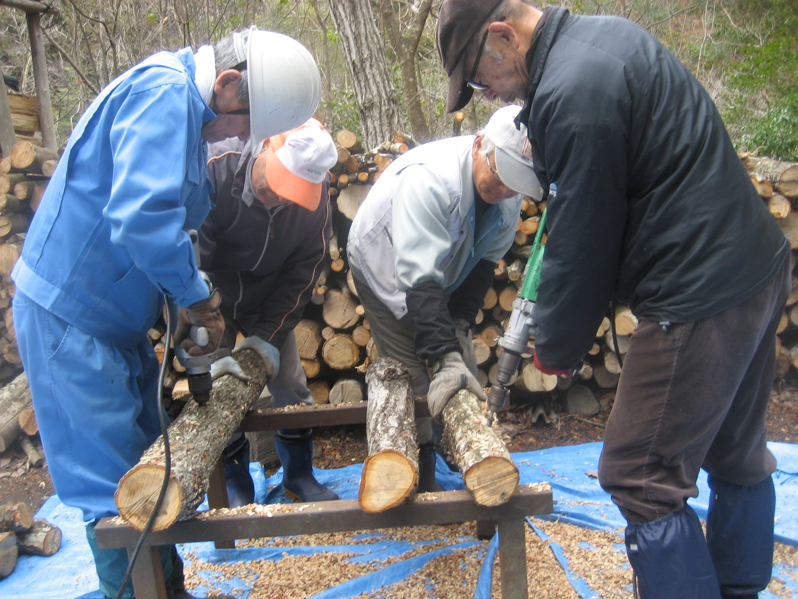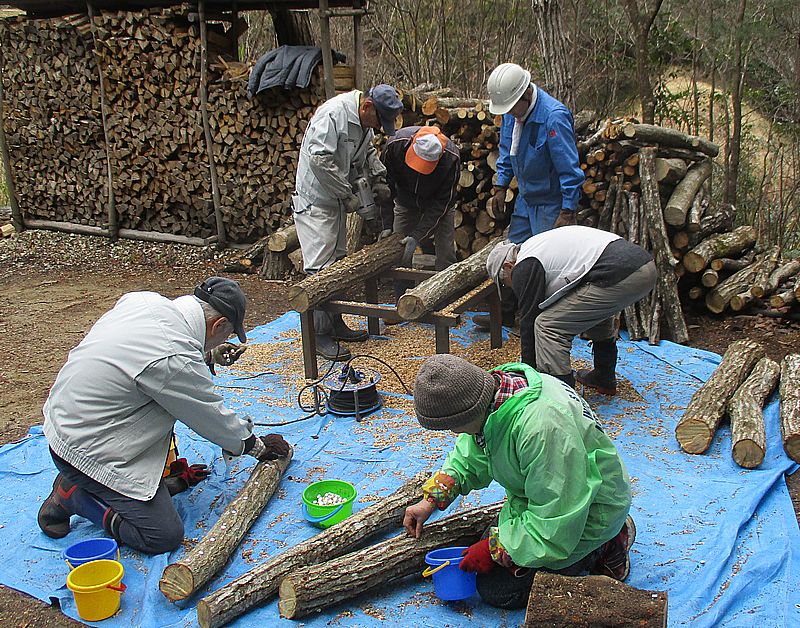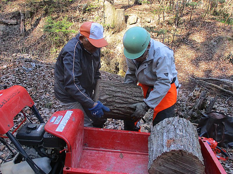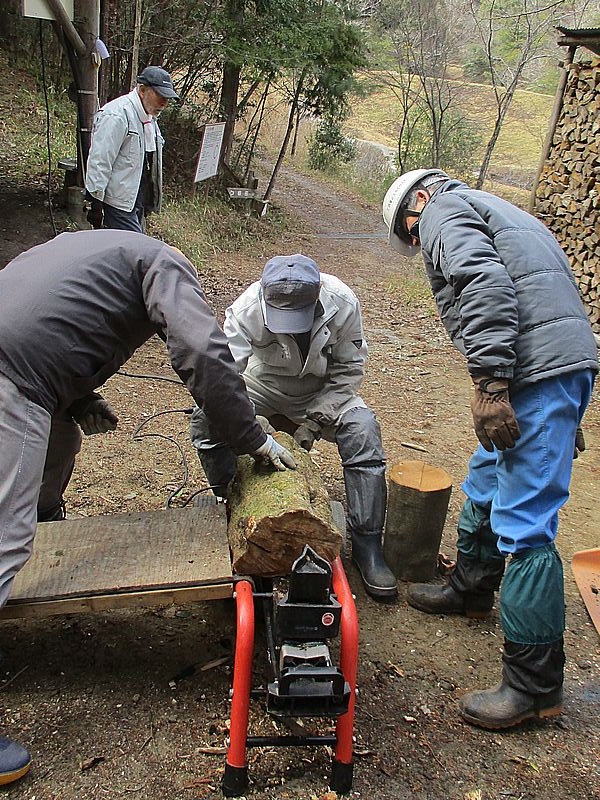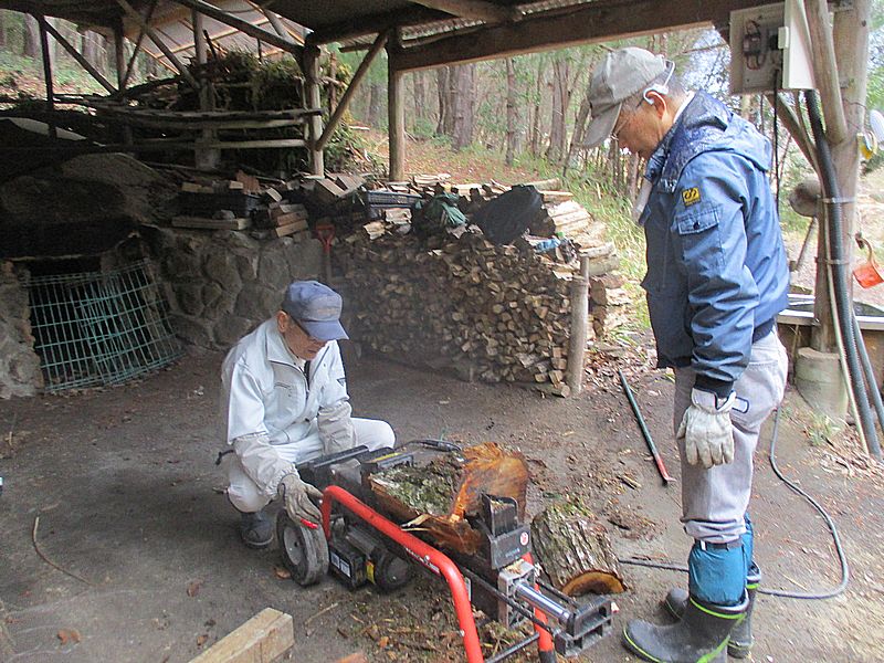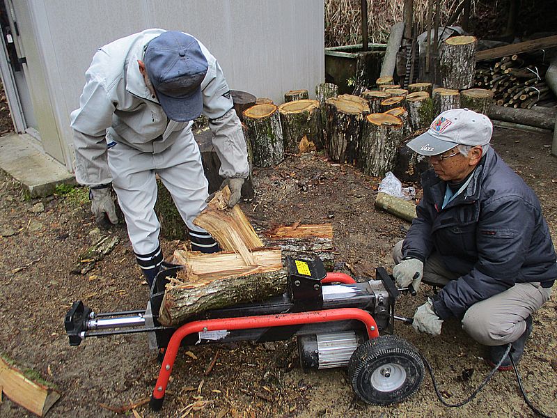 2024.02.17(土)ホダギに椎茸菌植付作業及び薪割り機による薪割り作業