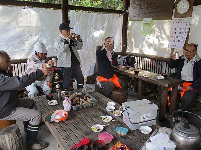 2025.12.26(金)薪及び炭焼き用にコナラの伐倒・定寸切り・搬送:お昼はグルメ担当さんが準備してくれたすき焼きを美味しく頂きました