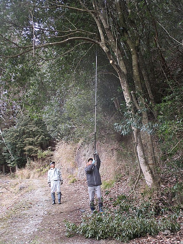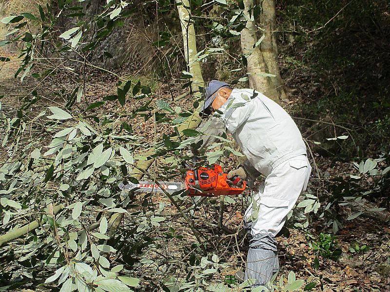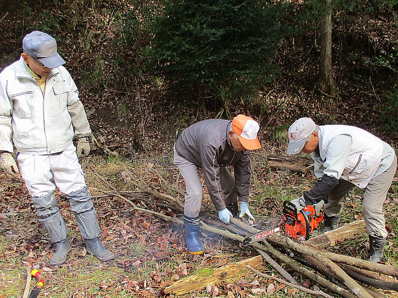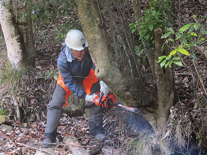 2024.02.04(日)散策路中池横に繁茂するアラカシを伐倒し炭材に活用