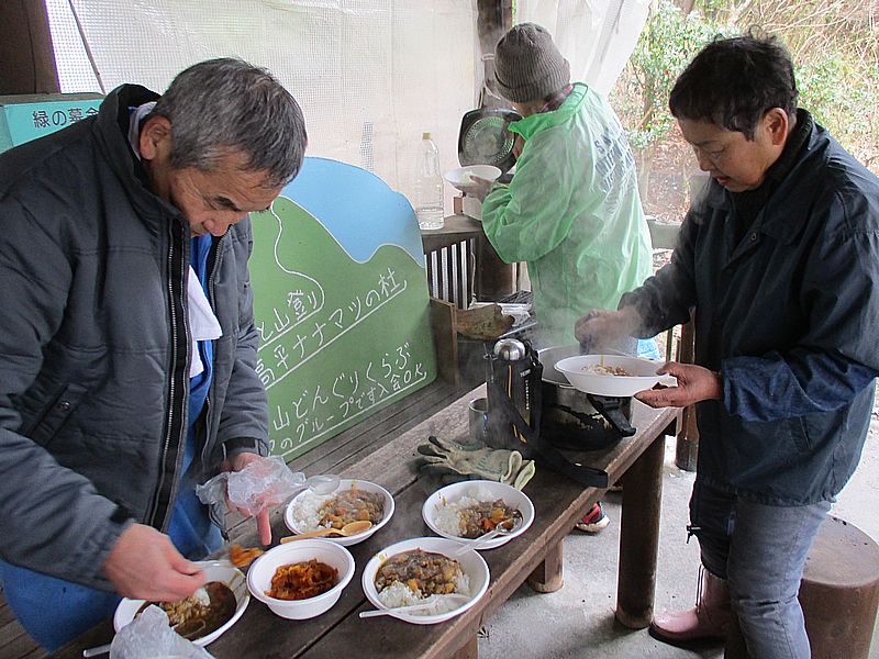 2026.01.04(日)26年最初の活動日、今回も薪・炭材用にコナラの伐倒・定寸切り・搬送作業:お昼はゼンザイを美味しく戴く