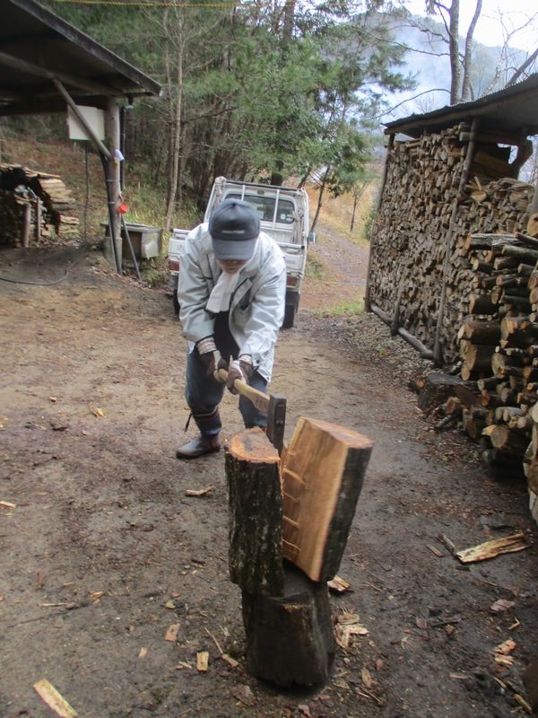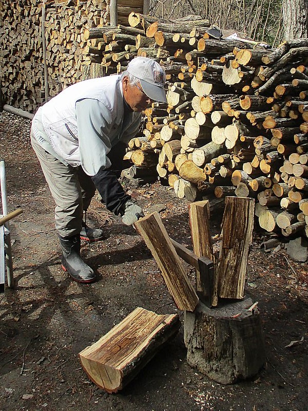 2024.02.23(金)共生センターに薪の搬送作業:薪割り機及び斧で薪割り作業