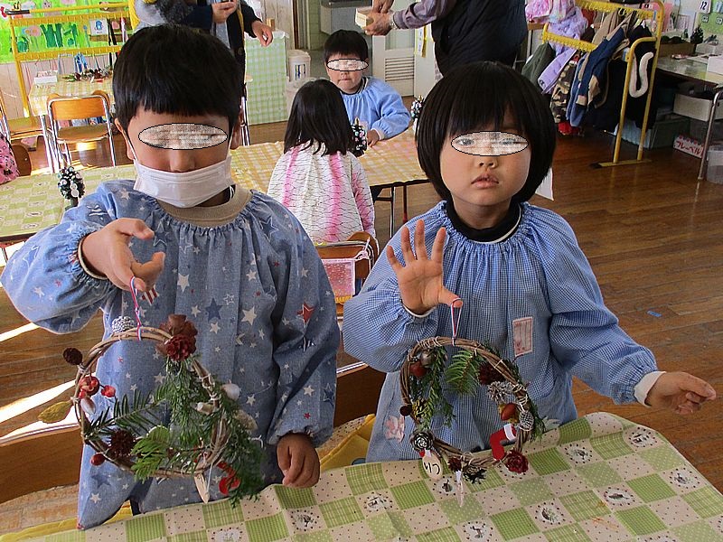 2023.12.01(金)高平幼稚園クラフト(クリスマスツリー・リース)作り
