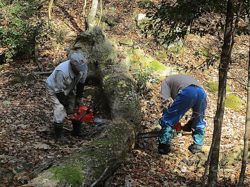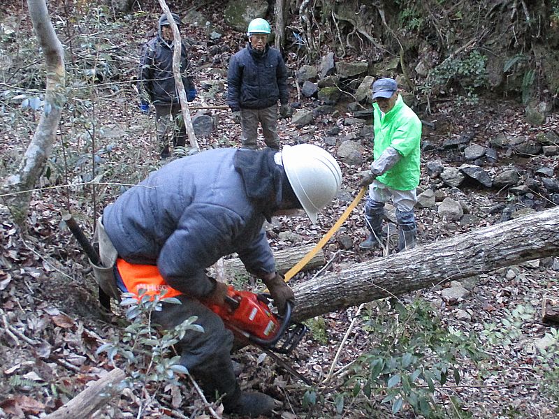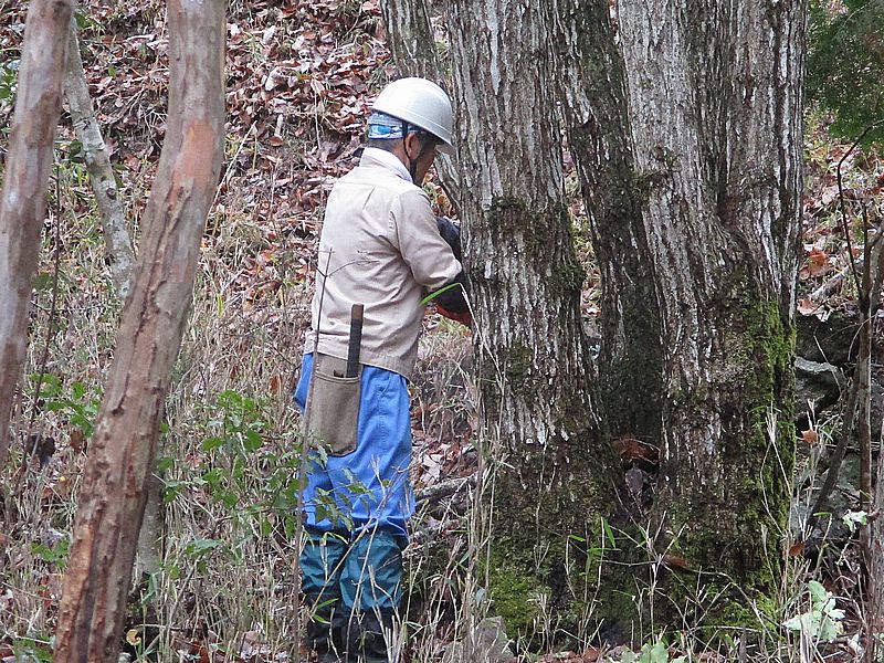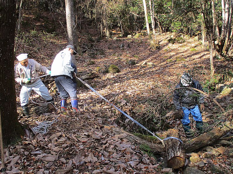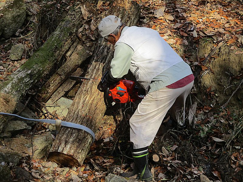 2023.12.16(土)椎茸栽培用ホダギの伐倒・定寸切り(併せ炭焼き用炭材確保)作業