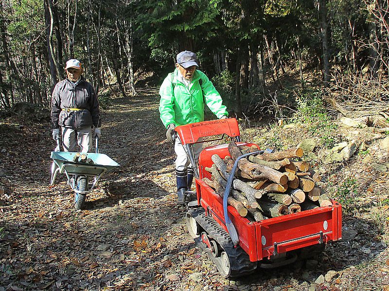 定寸切りしたコナラ・雑木を軽トラまで搬出作業