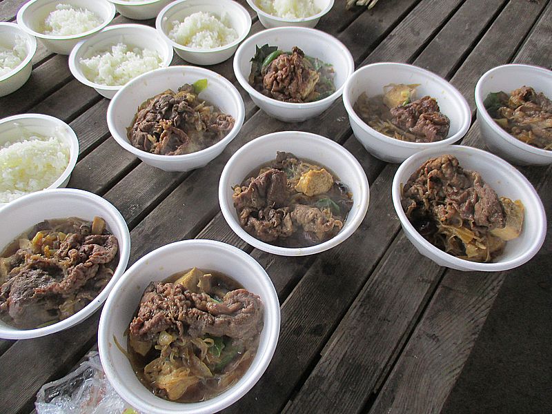 昼食はグルメ担当さんに調理して頂いたすき焼き風煮を頂きました。