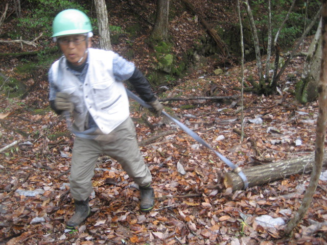 2026.02.01(日)昭和池~金比羅道~烏岳への散策路に倒れている倒木の除去及びブロワーで落ち葉の除去と炭焼き用柴作り作業