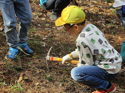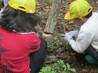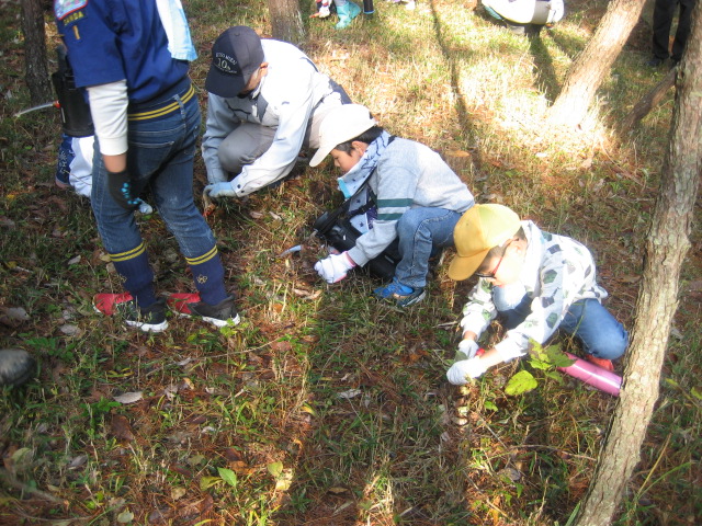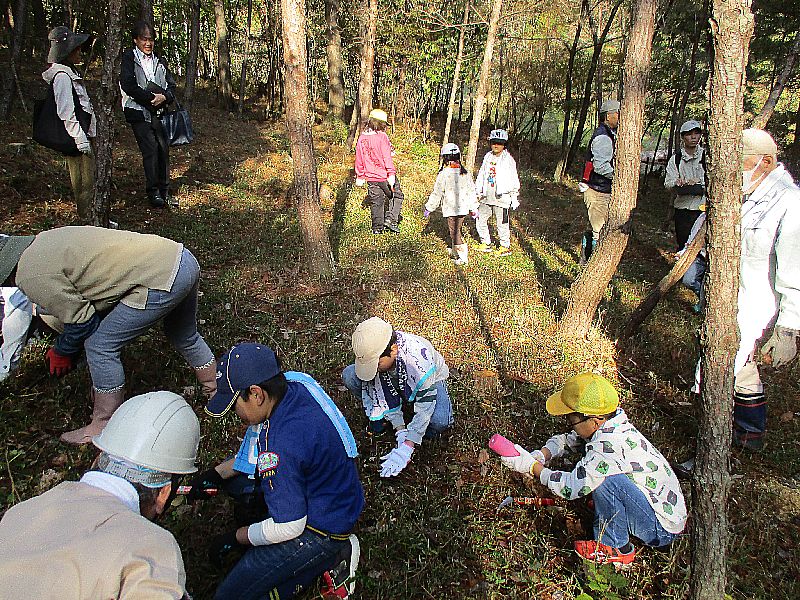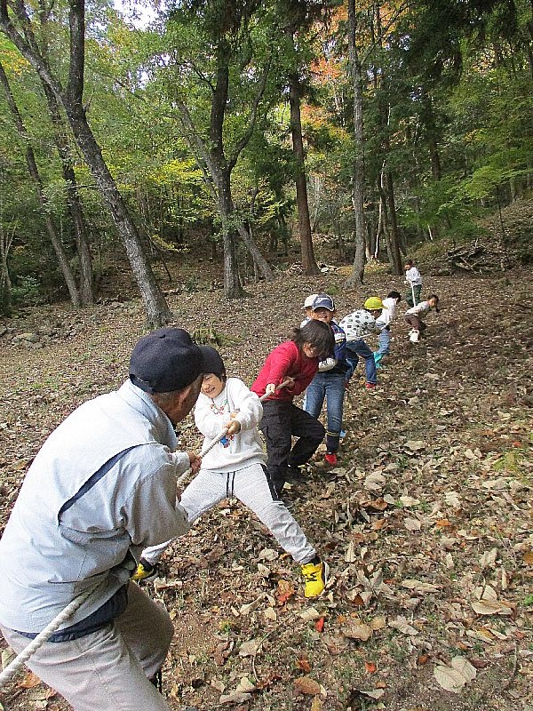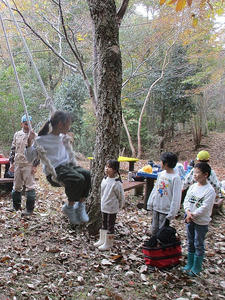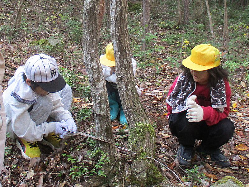 2025.11.14(金)高平小3年生環境体験学習支援(下草刈・雑木伐倒・定寸切り・どんぐり植え付け・ロープブランコ・