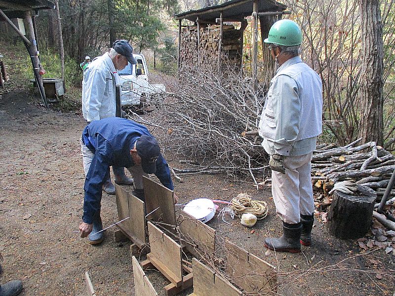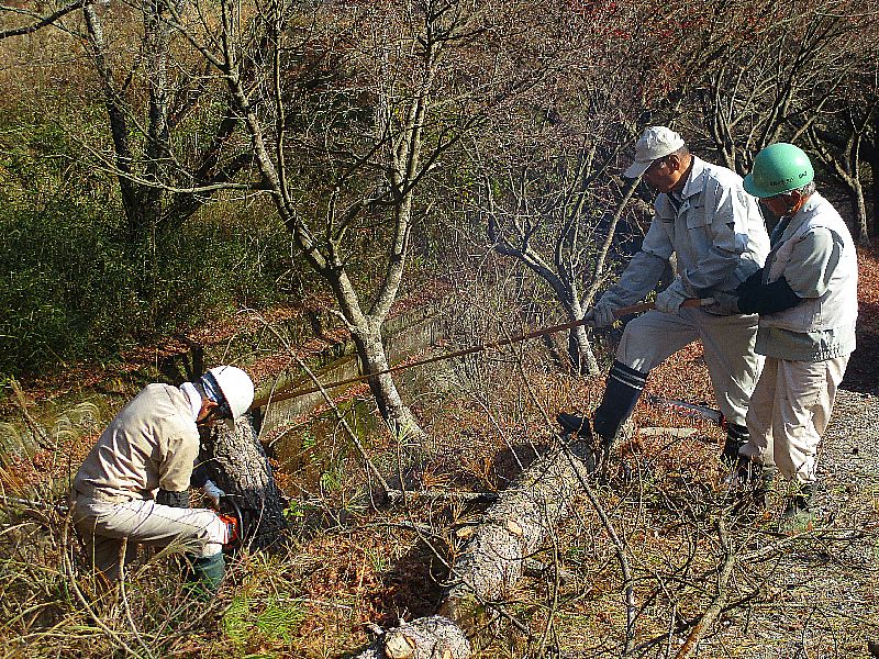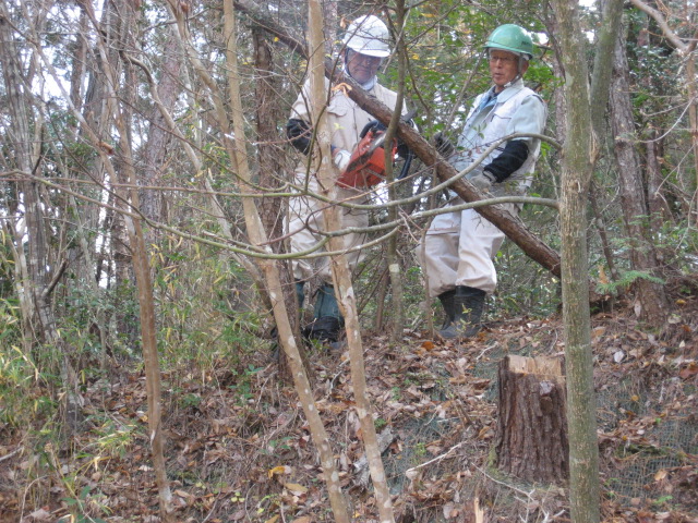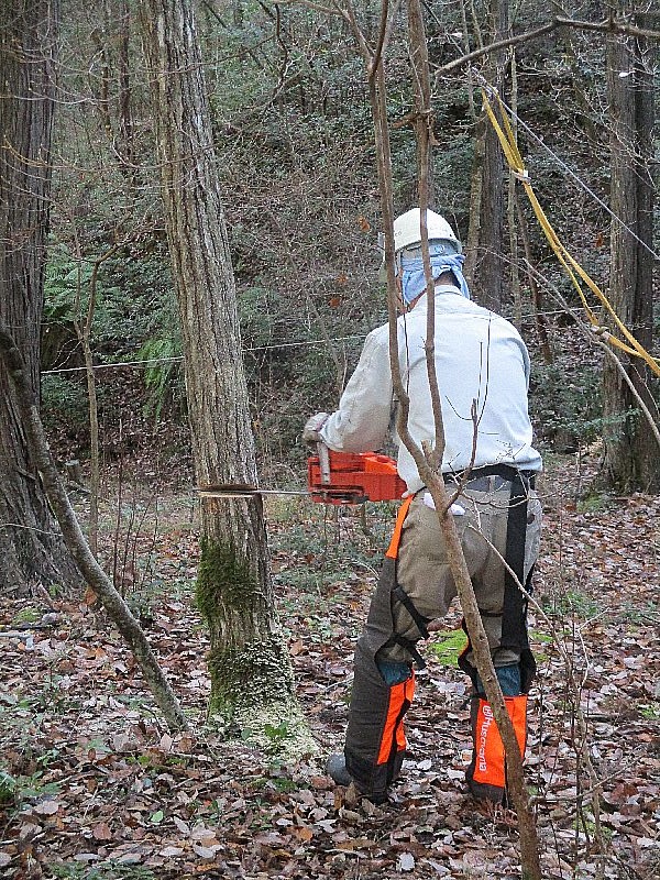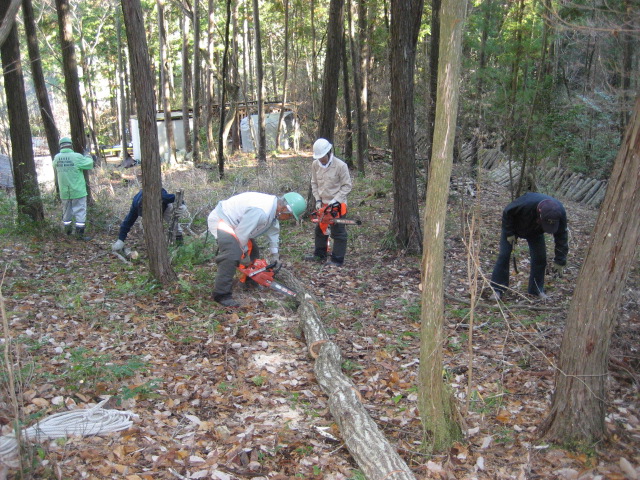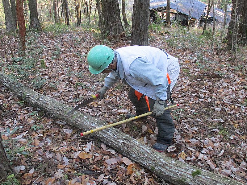 2025.12.20(土)椎茸栽培用にコナラの伐倒・保管及び炭焼き財の柴作り作業