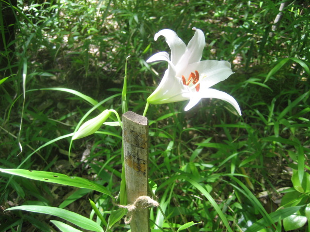 ササユリが開花し始めました。ササユリの植生調査の結果(昨年比、開花見込みが43株と31株減少)と少し心配ではあるが5葉以上の株が増加しており来年度に期待!!!