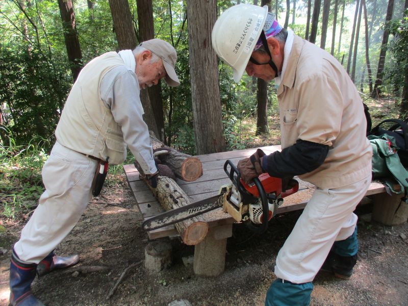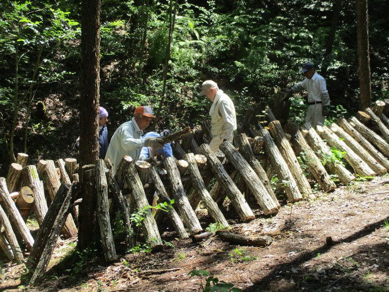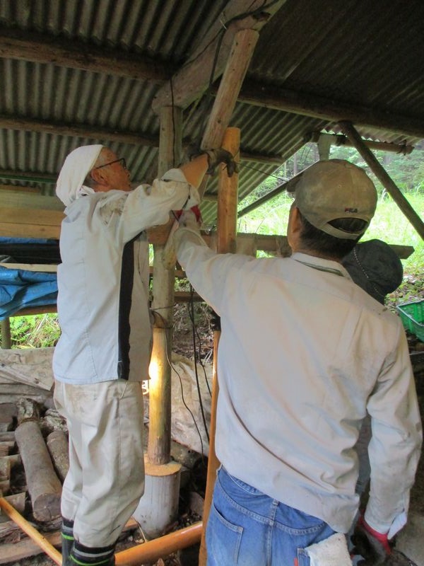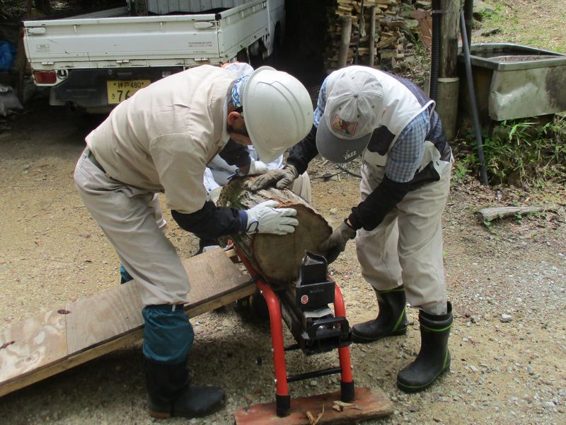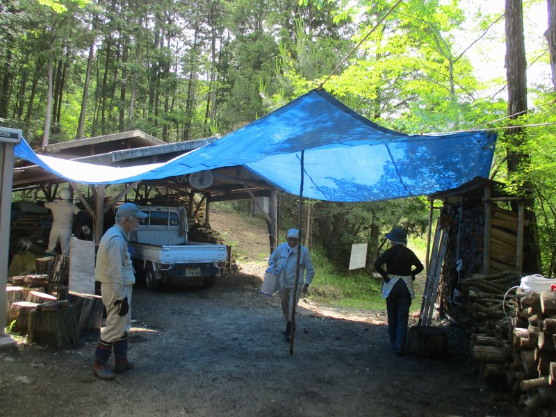 2023.06.17(土)9日の炭焼きで余った炭材を薪にする作業・密閉した炭窯の空気漏れ補修・椎茸ホダギの本伏せ作業