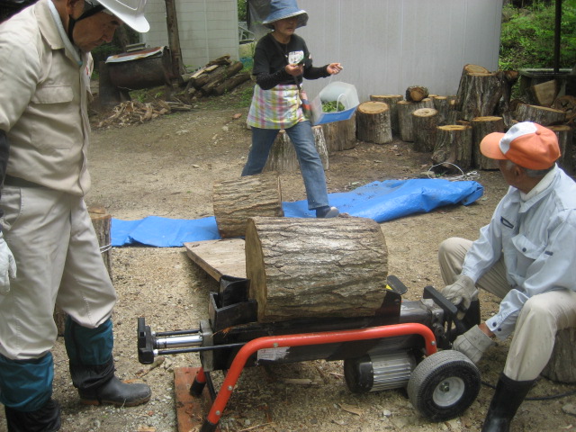 薪割り機による薪割り