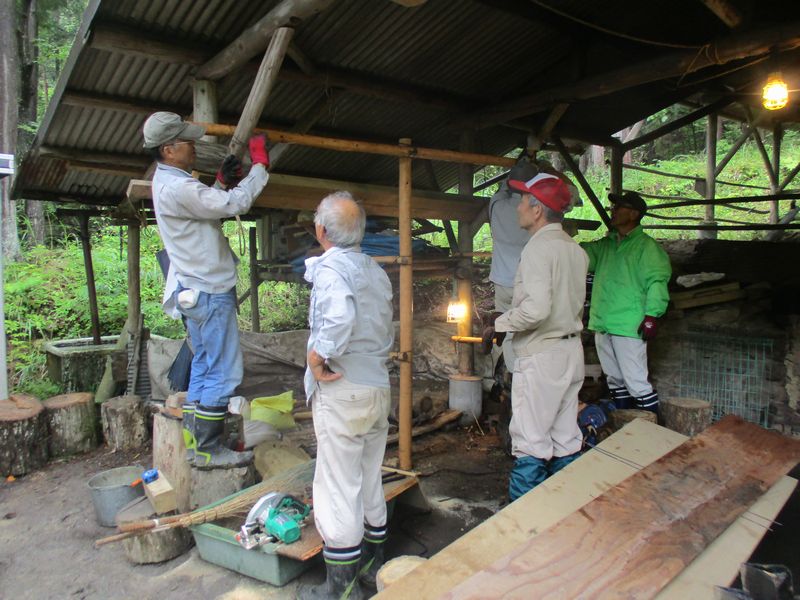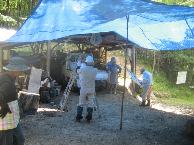 高平小炭焼き体験活動日の天候が雨の可能性あり炭窯前に雨除けに
