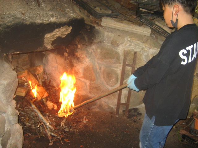 改めて小さな焚口より薪を投入これから約3日間窯の中の炭材が自燃