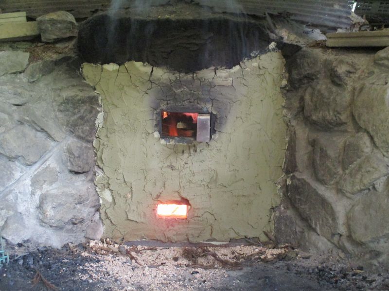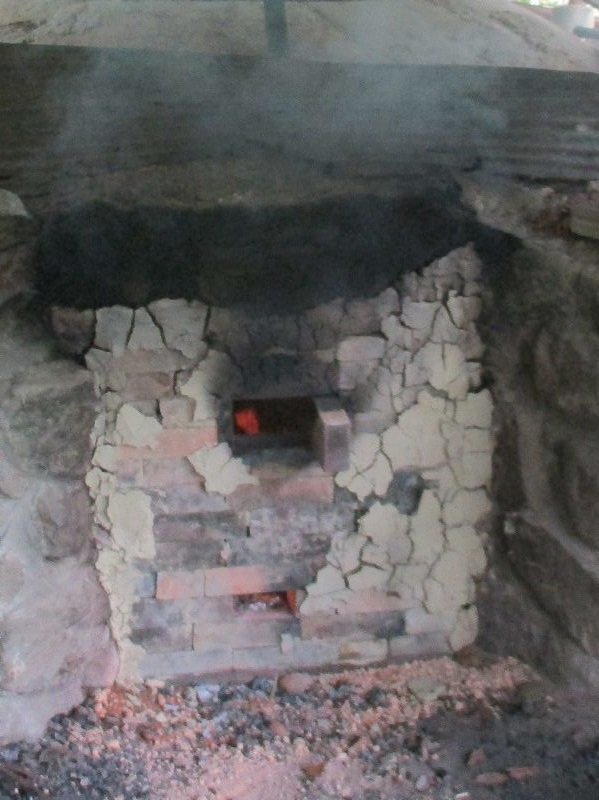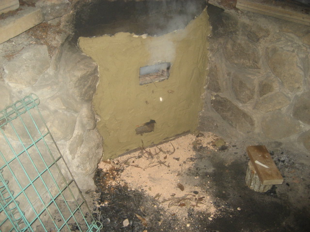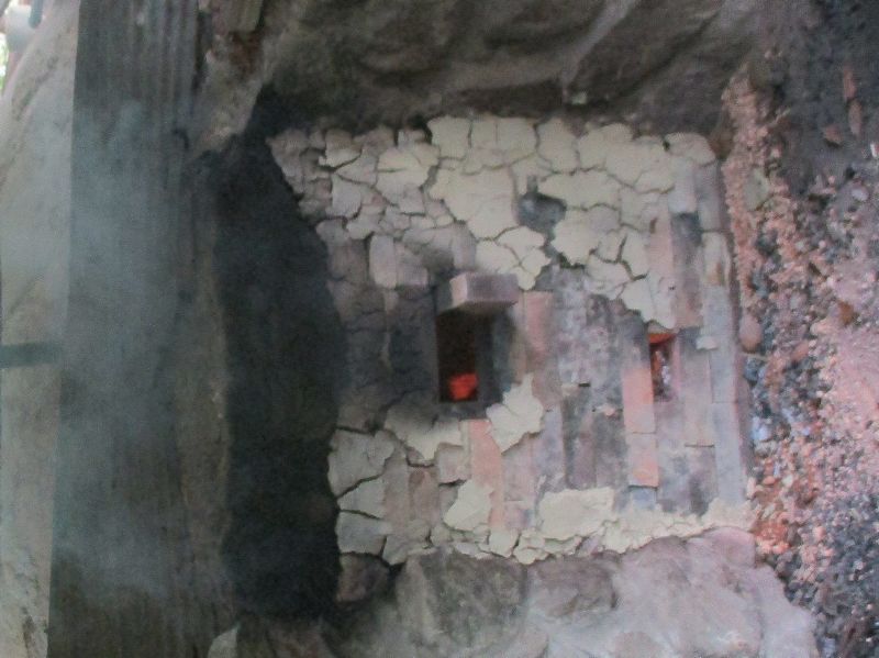 粘土塗り付け後の窯の焚口