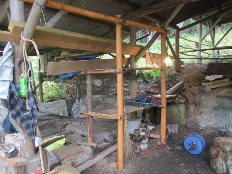 窯を密閉するまでの待ち時間に窯前に物置棚を