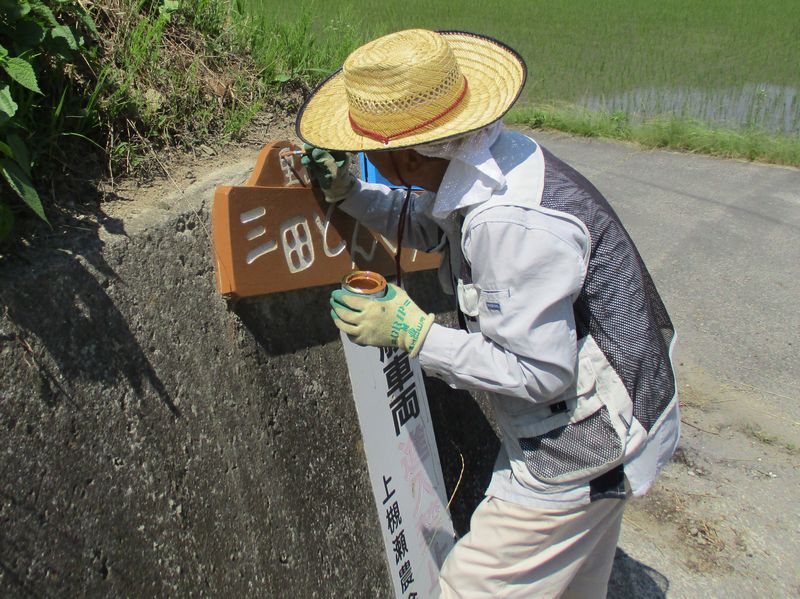 ナナマツの森導入路看板の塗り替え作業