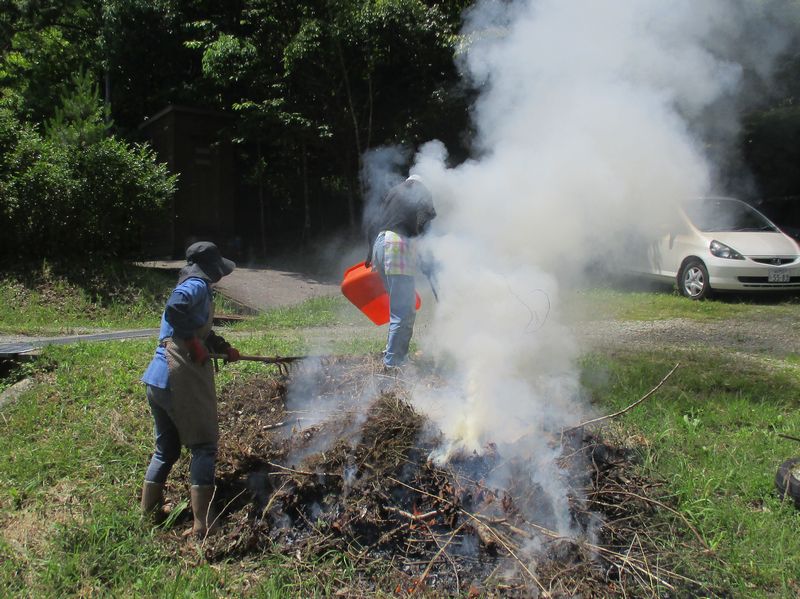 導入路の除草した雑草の焼却