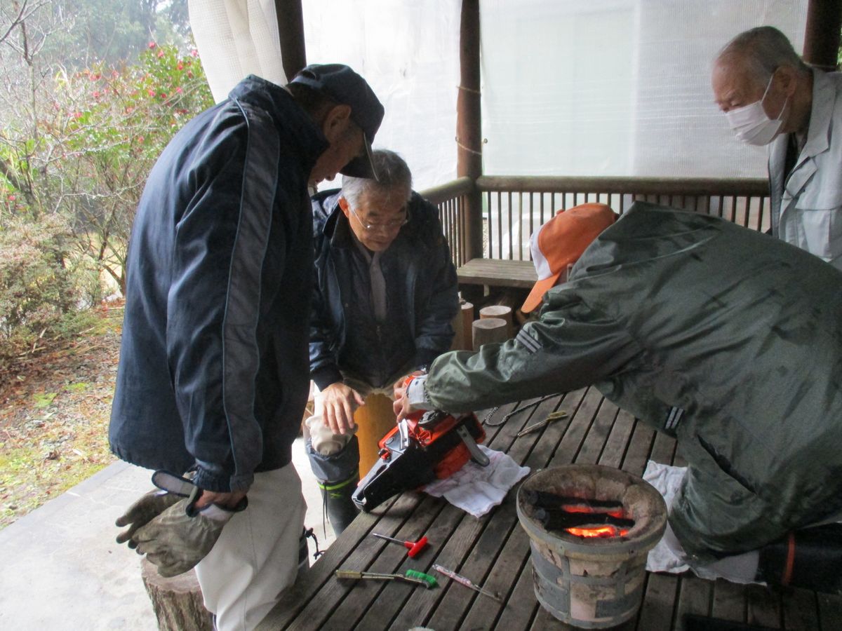 2023.02.24(金)生憎の雨で東屋でチエンソーの分解掃除