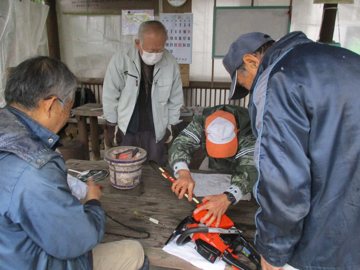 朝から生憎の雨で東屋でチエンソーの分解清掃