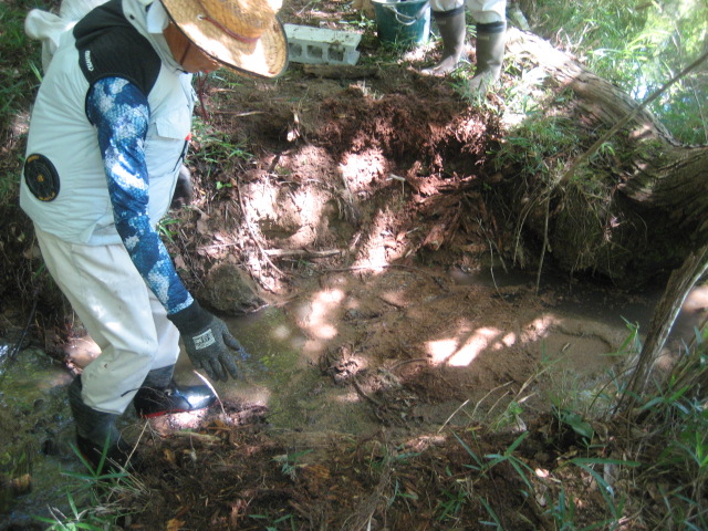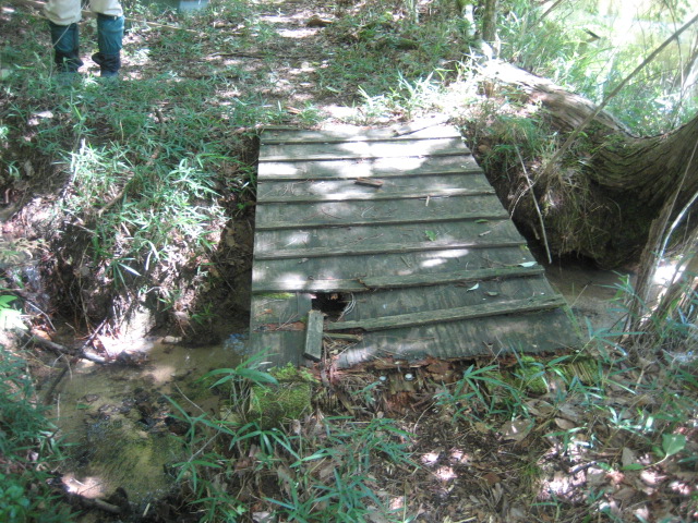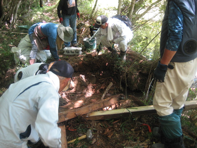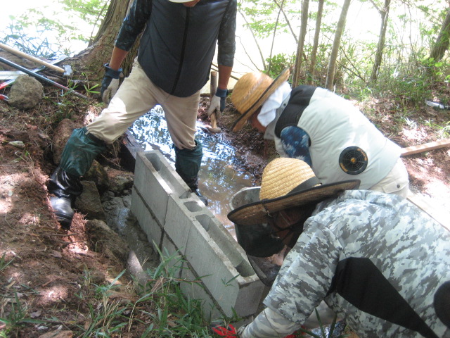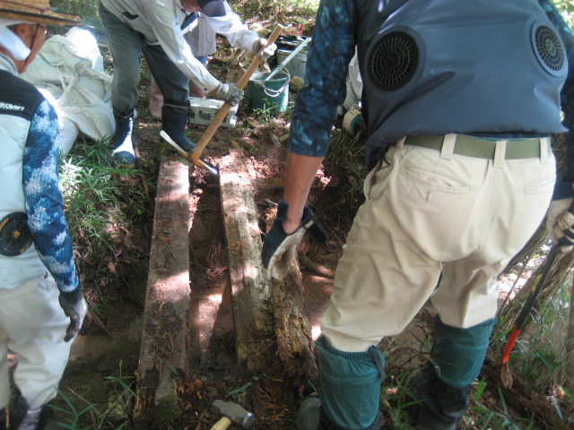 今日の土台準備作業終了後の状態(次回木橋の設置)