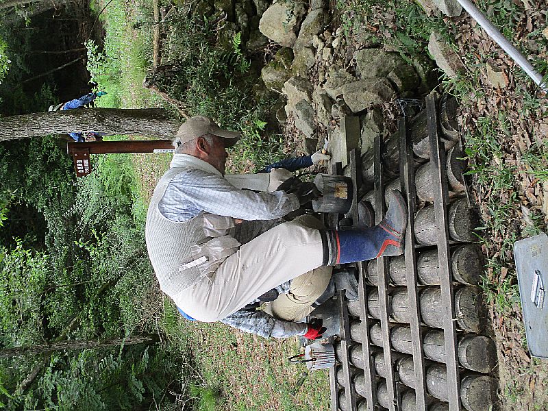 2026.01.17(土)前回、木橋の付け根が土砂でえぐられ大きな石を敷き詰めた後にセメントを流し込み固定作業及び炭材用にコナラの伐倒搬送作業